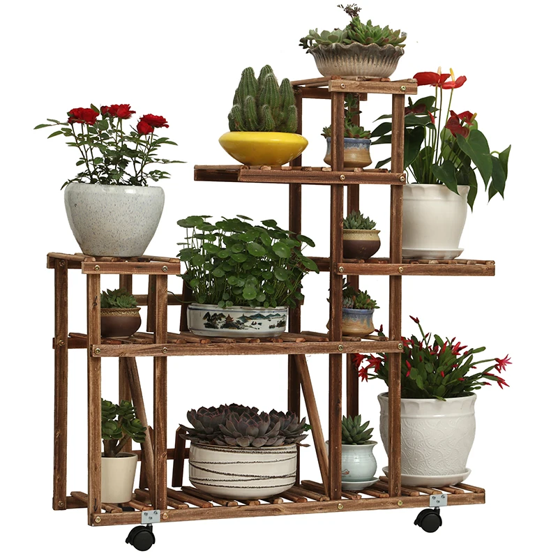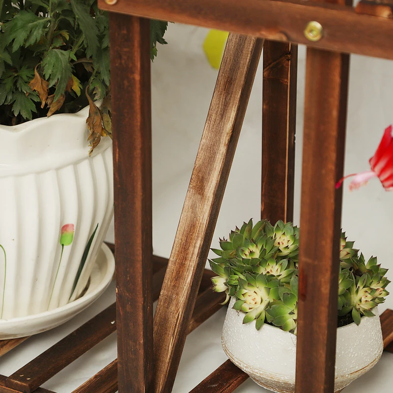 HOT SALE Flower Shelf Solid Wood Balcony Living Room Fleshy Antiseptic Plant Green Radiant Flower Pot Wrough