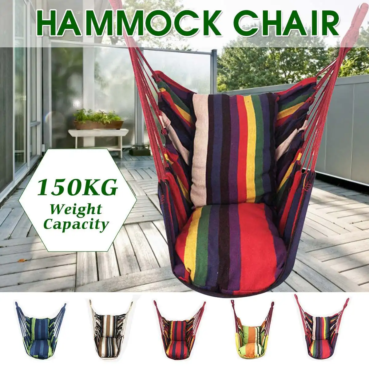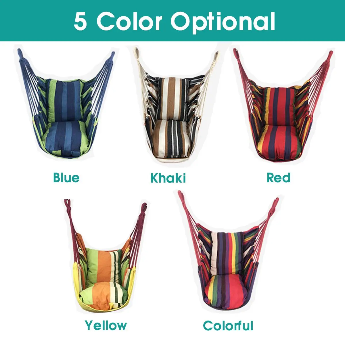 Portable Hammock Chair Hanging Rope Chair Swing Chair Seat with 2 Pillows for Garden Indoor Outdoor