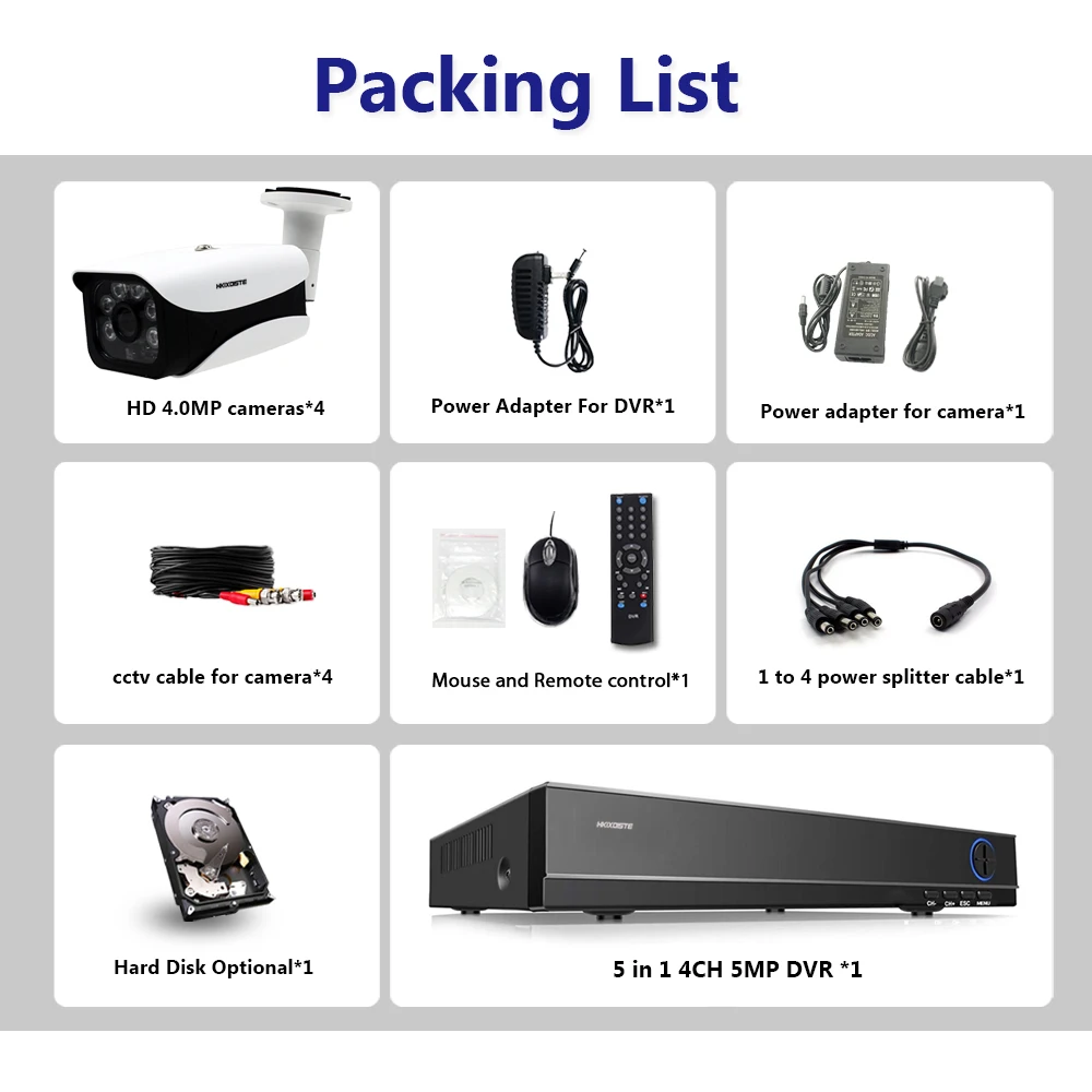 HD 5MP 5In1 DVR H.265 Video Surveillance 4 Cameras Security Camera Set For CCTV HD 4MP indoor Outdo